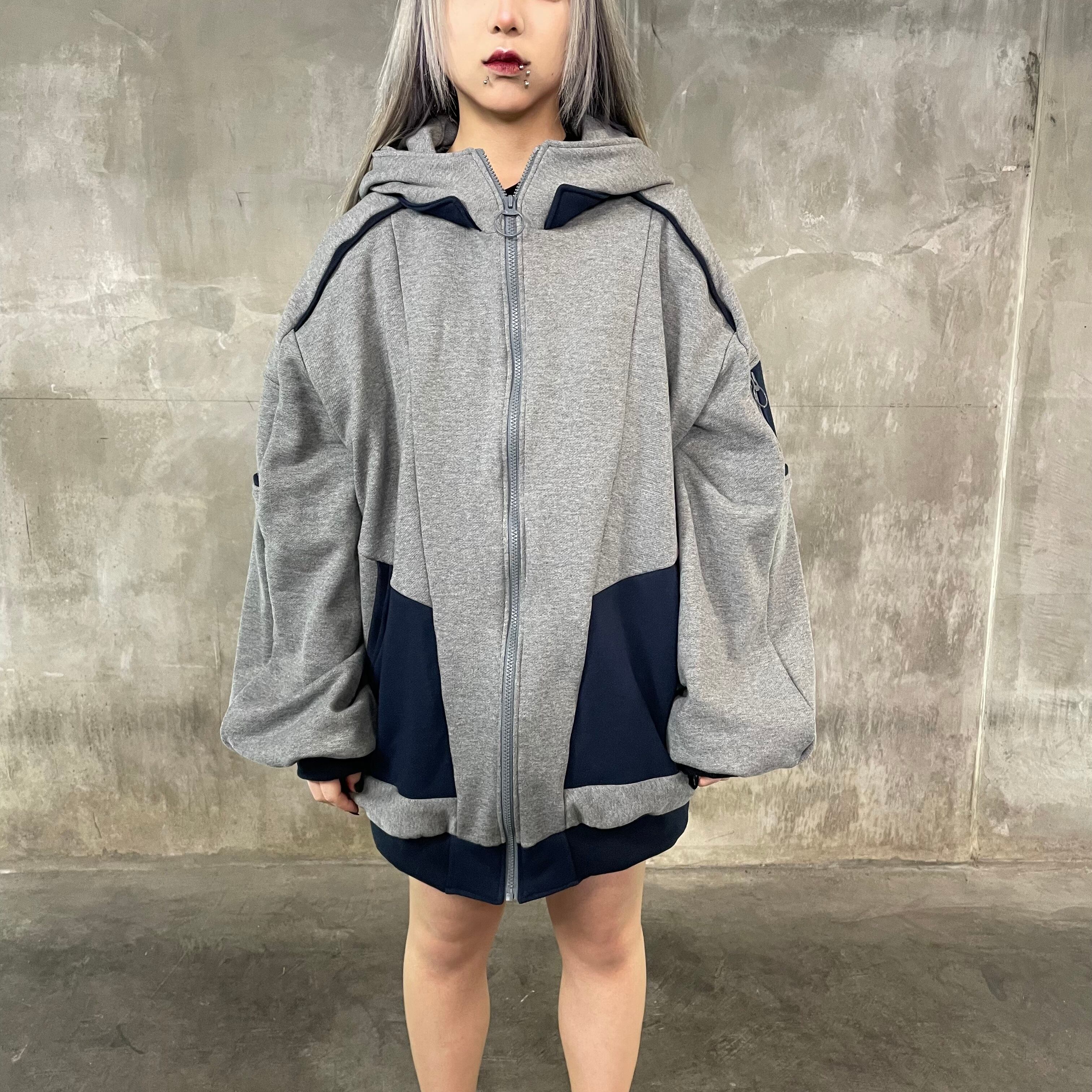 BI-COLOR ZIP HOODIE / GLAY × NAVY