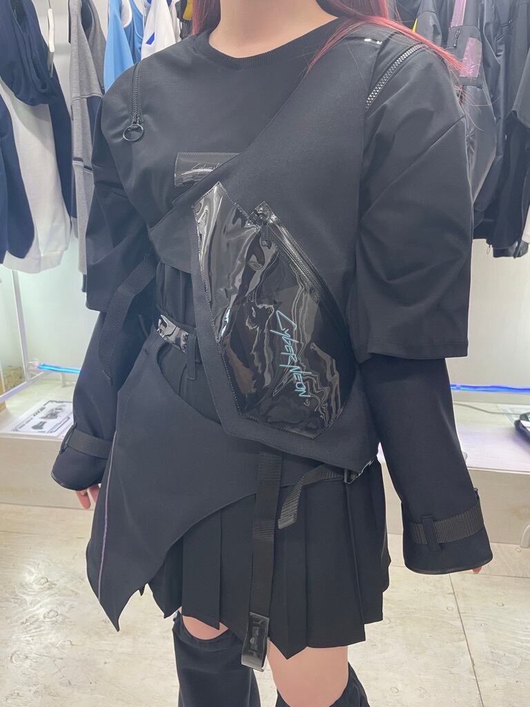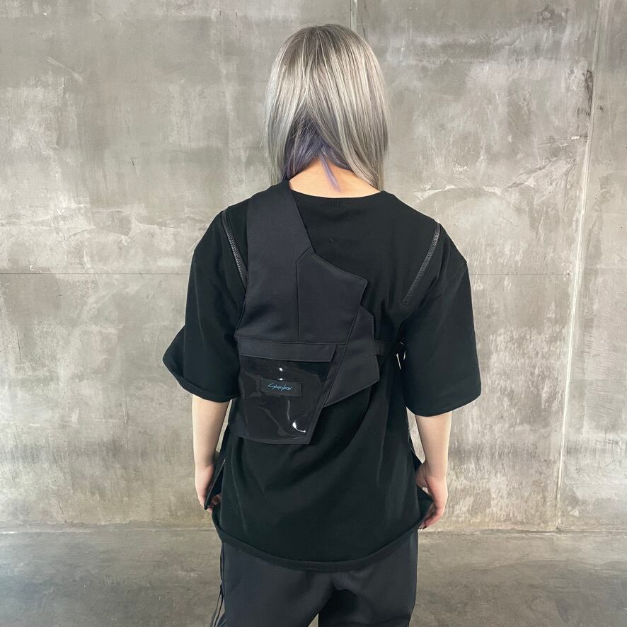 軽くて汚れにくくシワになりにくいTCの二重織ストレッチツイル素材で作られた未来的なデザインのベスト
