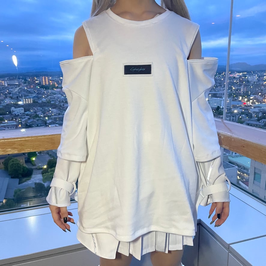 両肩と両裾についた開閉可能なファスナーが特徴のTシャツ